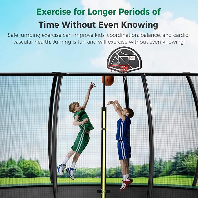 - 【Backyard Fun at Its Best】Take backyard fun to a new level with our 12ft outdoor trampoline. Let your children jump and play to their heart's content, experiencing the full joys of childhood
