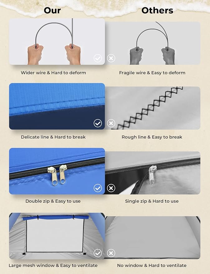 - Great ventilation: Glymnis Pop Up Beach Tent with a big meshes window for ventilation, keep cool and enjoy the outside scenery at the same time. Wonderful for for all-day shade at the park,beach,sporting event